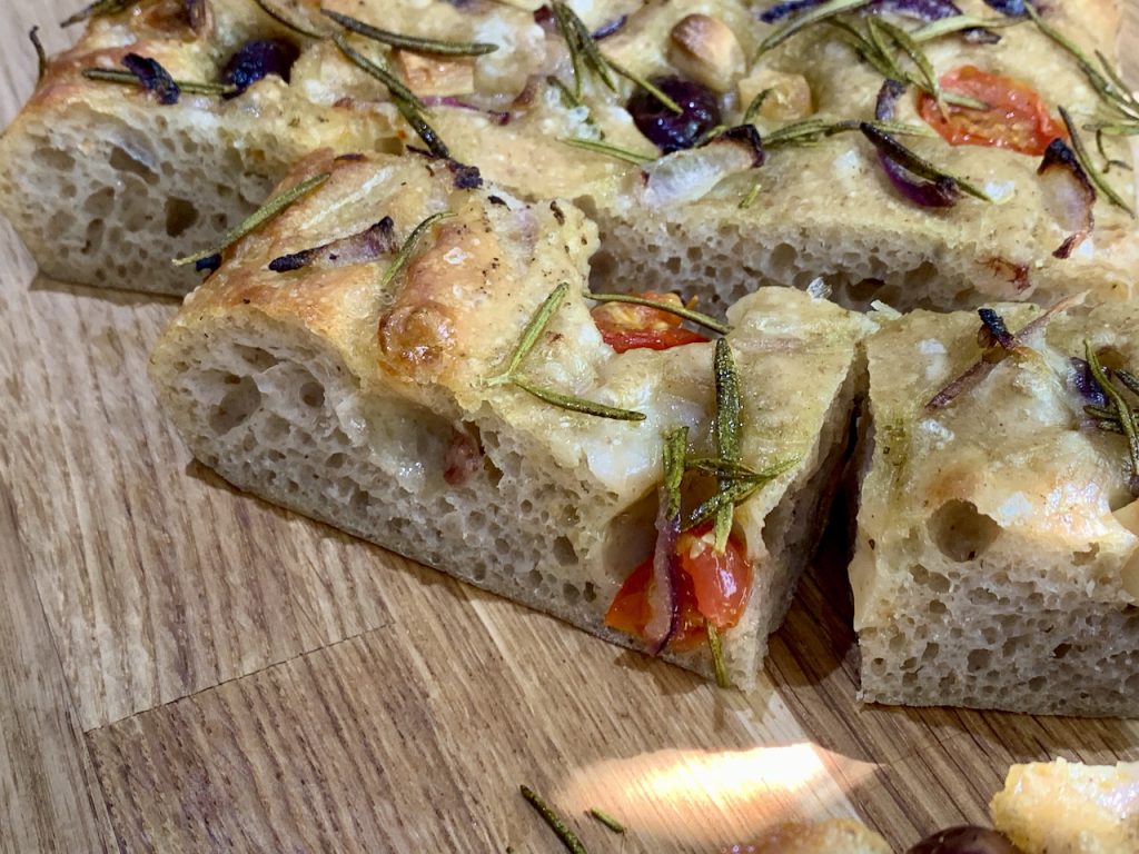 Fully loaded sourdough focaccia